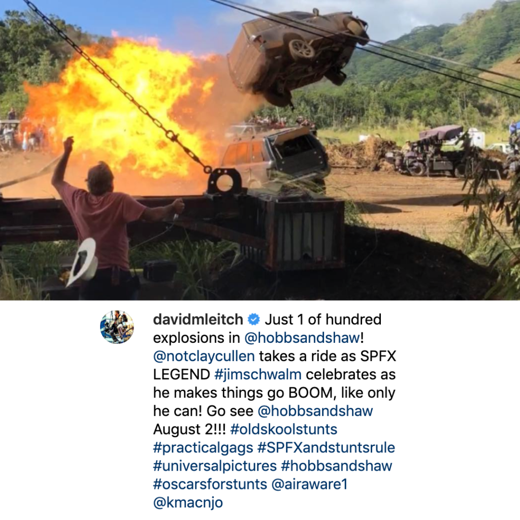 View Larger Image Inside the Wild Yet Believable Action of ‘Hobbs & Shaw’By C. Shaw|2019-08-02T16:48:16-07:0008.2.19|Uncategorized|Hobbs & Shaw director David Leitch Instagram Post, July 13, 2019Read the article here: Variety Hobbs & Shaw director David Leitch Instagram post, July 20, 2019 Hobbs and Shaw director David Leitch Instagram Post, July 18, 2019 Click here for yours!