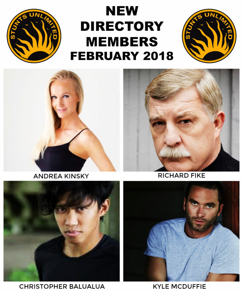 *Please note, you must have worked with or auditioned for one of our Members to be considered for the Directory. Directory Members are not Members of Stunts Unlimited and cannot be sponsors.