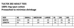 **The Gold shirt is from the Tultex brand and it runs longer and more narrow than the black and white shirts