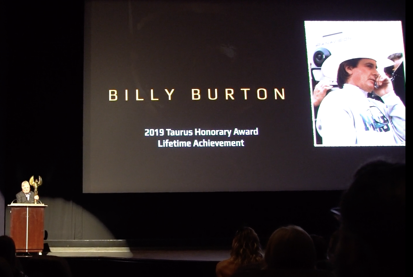 Billy Burton Sr. accepting the 2019 Taurus World Stunt Lifetime Achievement Award
