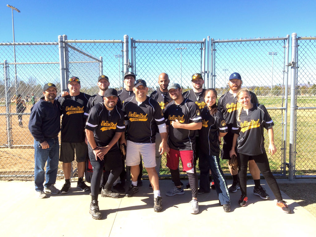 View Larger Image Go team UNLIMITED!!By cnaz|2015-01-27T12:07:45-08:0001.27.15|Featured|Stunts Unlimited softball team won our first victory last weekend 12-10! Go team UNLIMITED!