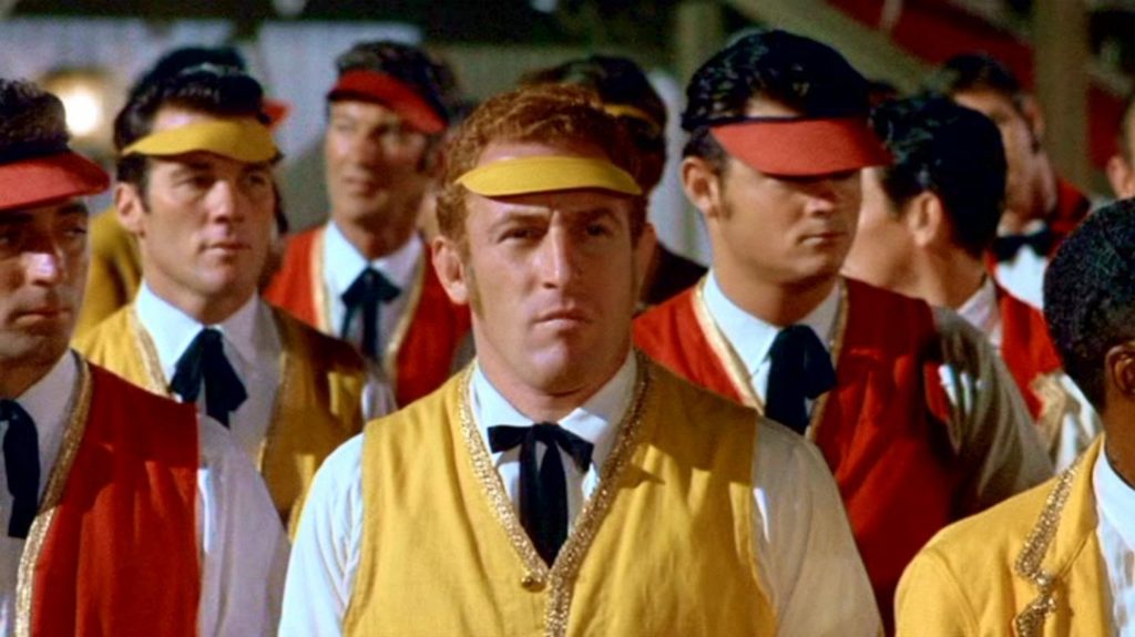 “4 for Texas” (1963) starring Frank Sinatra and Dean Martin. To Gene’s right are stuntmen Charles Picerni, Hal Needham, and Paul Stader