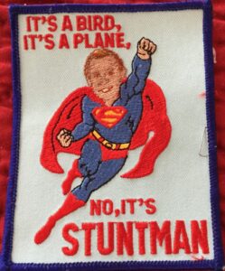 I’ll never forget working with Gene in Minneapolis for David Ellis. I was driving a weenie mobile and Gene was driving a truck and they wanted a near miss, so we did the take and they said we weren’t close enough – we showed em the paint scraped off the sides of the cars and they said, ‘Okay, I guess you’re right.’ I get his patches every year, got em all right here. Love you brother – congratulations! – J.N. Roberts