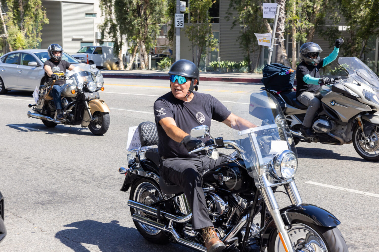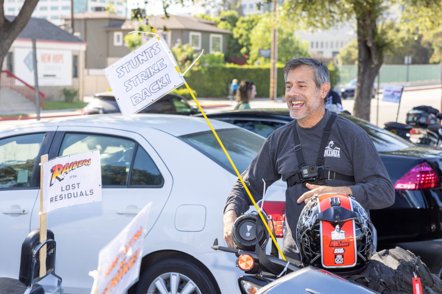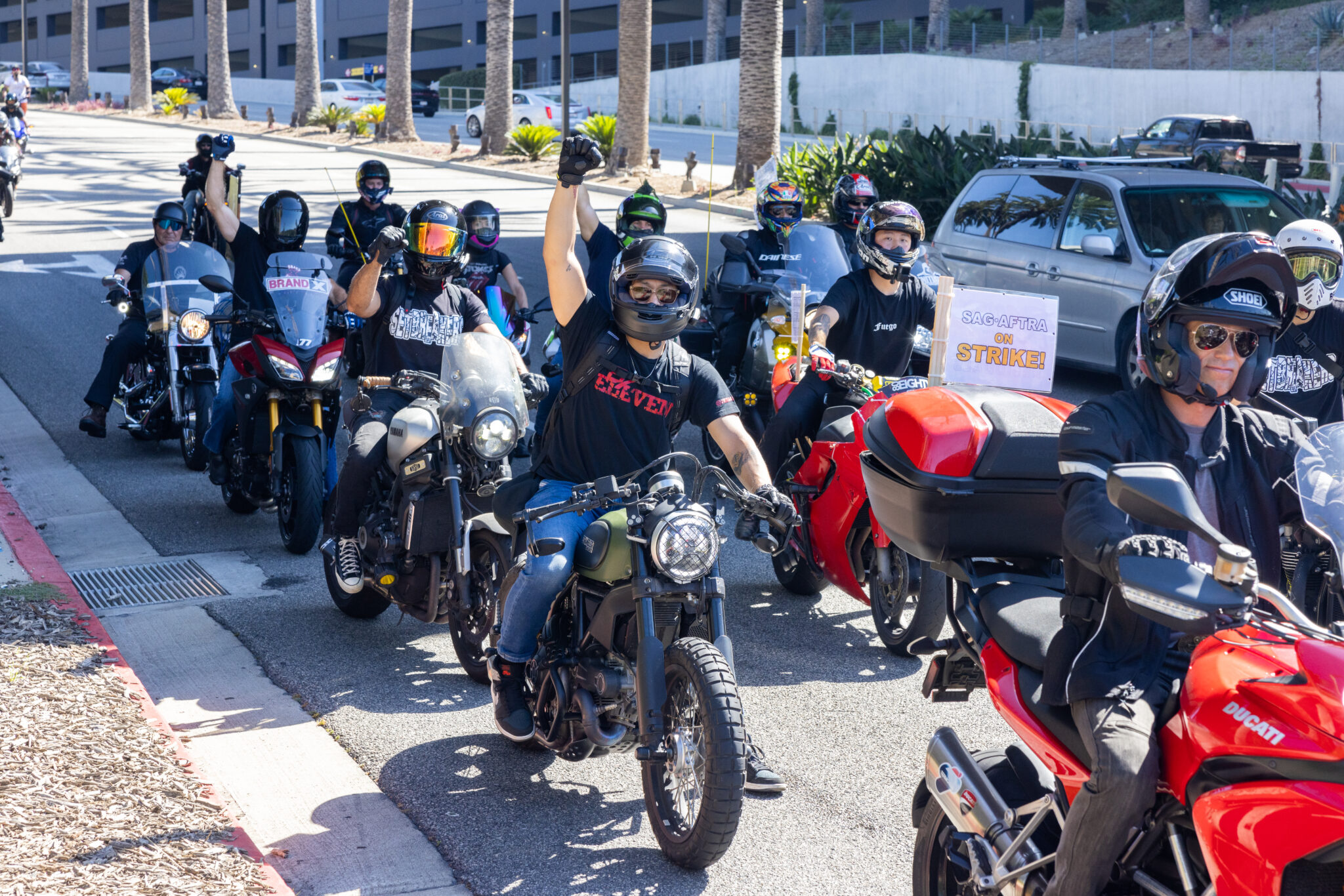 Stunts Unlimited member Jalil Jay Lynch led approximately 60 motorcycle riders on a moving picket line past 11 studios, the SAG-AFTRA offices and Mann’s Chinese theatre!