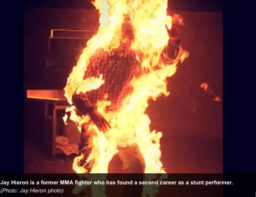 “Before a fight I used to tell myself to relax, breathe, stay warm and loose,” former Ultimate Fighting Championship combatant and current actor and stuntman Jay Hieron told USA TODAY Sports. “When I am getting ready to do a big scene, I do exactly the same. You have to be ready to turn all your preparation into performance. That’s why there are so many athletes in the stunt world.”